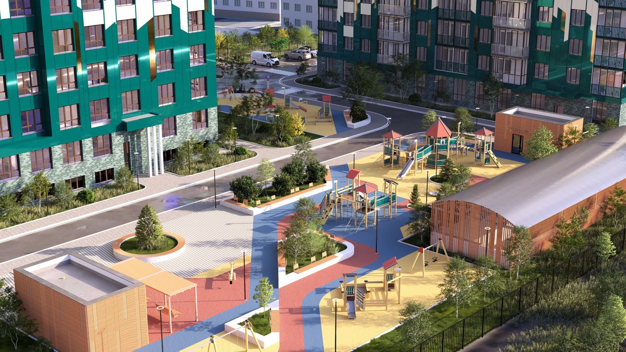 Застройщик создает пространство с заботой о физическом и ментальном здоровье жителей.Здесь продуманы удобные спортивные площадки, система освещенияво дворах и внутри домов, спокойные тона в оформлении фасадов.